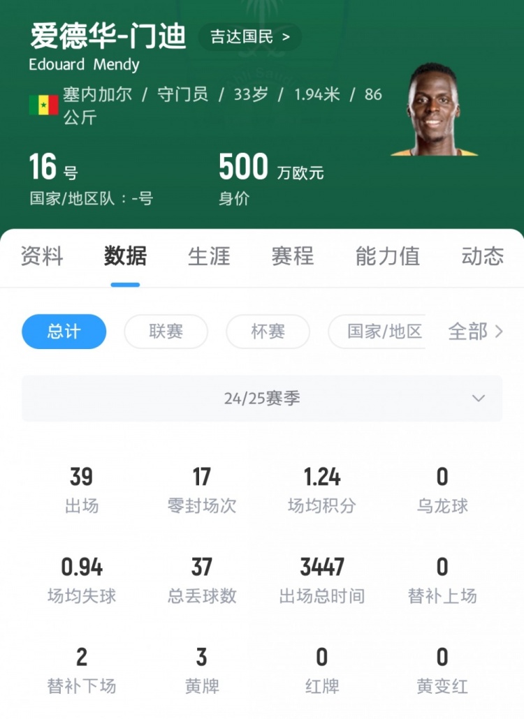 6月26日讯 塞内加尔门将爱德华-门迪目前效力于吉达国民,2023年夏天他离开切尔西加盟吉达国民,转会费1600万英镑。和许多前往沙特的球员一样,门迪也被指责为了钱而做出这一选择。