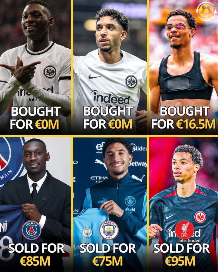 当年马尔穆什以及穆阿尼都是自由身加盟法兰克福,球队没有出任何转会费,而法兰克福签下埃基蒂克也仅仅花费了2000万欧元(租借+买断费用总和)。而这三名球员共让球队获得了大约2.7亿欧元。