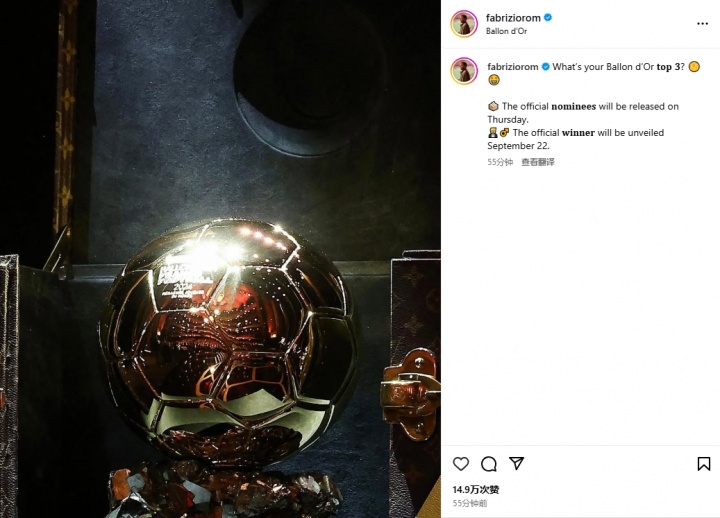 08月01日讯 2025金球奖将于8月7日宣布提名名单,获奖结果则是9月22日公布。罗马诺社媒发问:你心中的金球奖前三是谁?