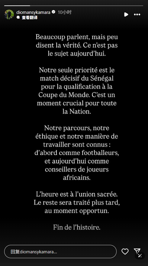 我们唯一的优先事项,就是塞内加尔在世界杯预选赛的关键战。这对整个国家而言都是至关重要的时刻。